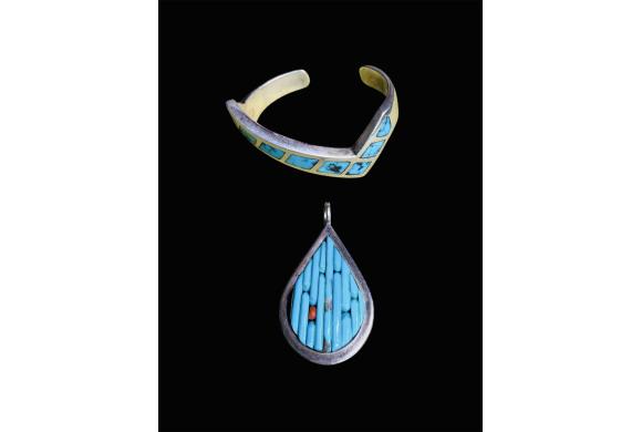 Native American Turquoise inlay Bracelete and Turquoise inlay Charm