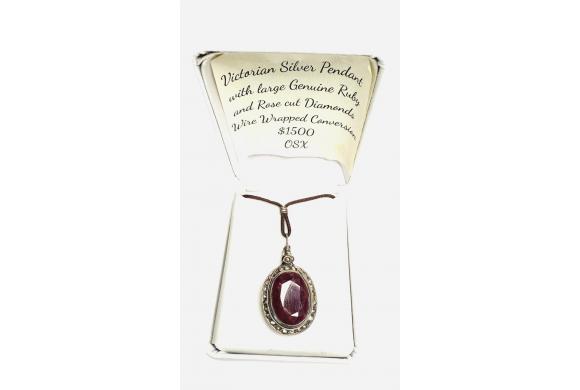 Victorian Silver Pendant / Ruby Rose cut diamonds